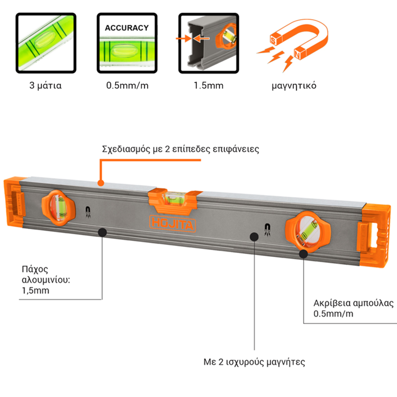 Αλφάδι αλουμινίου μαγνητικό - HOJITA (600008.0039)