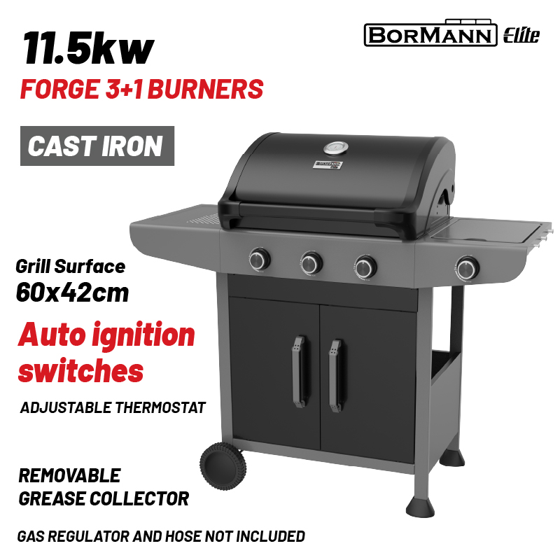 Ψησταριά Υγραερίου FORGE 3+1 εστιών, με μαντεμένια σχάρα, ρόδες
