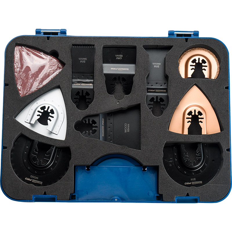 Το σετ περιλαμβάνει:2 τεμάχια 58CRV 34.1x0.66 Ίσια Λάμα 18T (Φρέζα)2 τεμάχια 58CRV 34.1x0.66 Ίσια Λάμα 14T (Λείανση)2 τεμάχια BIM (M4+D6A) 34.1x0.8 Ίσια Λάμα 18T (Φρέζα)1 τεμάχιο BIM (M4+D6A) 44x50x0.8 Ίσια Λάμα 18T (Φρέζα)1 τεμάχιο 58CRV 68x0.66 Ίσια Λάμα 18T (Φρέζα)1 τεμάχιο 65Mn Φ87x0.50 Λεπίδα 18T (Φρέζα)1 τεμάχιο BIM (M4+D6A) Φ87x0.65 Λεπίδα Τομέα 18T (Φρέζα)1 τεμάχιο 58CRV 51.7x0.66 Ξύστρα1 τεμάχιο Ξύστρα 58CRV 51.7x1.01 τεμάχιο Λεπίδα Καρβιδίου Φ64 G50-601 τεμάχιο Λεπίδα Καρβιδίου 80x80x80mm με Τρίγωνο G30-401 τεμάχιο Δίσκος Λείανσης 80x80x80mm10 τεμάχια Χαρτί Λείανσης 80x80x80mm G60/80/120/180/240 (2τμχ το καθένα)1 τεμάχιο Μαύρη Φλάντζα