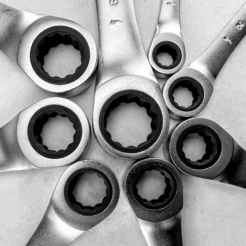 Σετ Γερμανοπολύγωνα Καστάνιας 8 τεμαχίων από τη Bormann Pro, υλικό χρώμιο- βανάδιο, ίσιο.Μεγέθη (mm): 8, 10, 12, 15, 17, 19