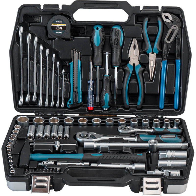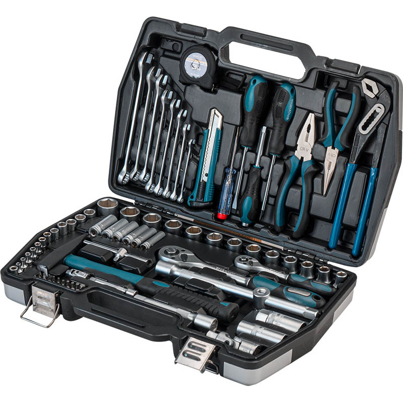Περιλαμβάνει:1x Μυτοτσίμπιδο (150mm)1x Γκαζοτανάλια (240mm)2x Κατσαβίδια: 6x100mm, PH2x100mm1x Κατσαβίδι με υποδοχή μυτών 150mm1x Δοκιμαστικό Κατσαβίδι 100-250V, CE8x Γερμανοπολύγωνα: 6-8-10-11-12-13-14-17mm1x Κοπίδι 18mm με 3 Λεπίδες1x Μέτρο Μεζούρα 3μ13x Καρδυδάκια ½": 10-11-12-13-14-15-16-17-18-19-21-22-241x Καστάνια ½", 72 Δόντια2x Προεκτάσεις ½""x5"" (125mm) & 10""(250mm)1x Αντάπτορας 3 Επιλογών1x Αρθωτός Σύνδεσμος ½"2x Καρυδάκια για Μπουζί ½""x16-21mm12x Καρυδάκια 1/4'': 4-4.5-5-5.5-6-7-8-9-10-11-12-131x Αντάπτορας 1/4"για Μύτες6x Καρυδάκια Μακρύλαιμα 1/4'': 8-9-10-11-12-13mm1x Καστάνια 1/4'', 72 Δόντια1x Προέκταση1/4''"x3""(75mm)1x Αρθωτός Σύνδεσμος 1/4"1x Ολισθαίνουσα Μανέλα Ταφ 110mm1x Σφυρί 300g, TUV/GS20x Μύτες, 1/4""x25mm1x Πένσα (180mm)Σε Πλαστική Βαλίτσα Μεταφοράς