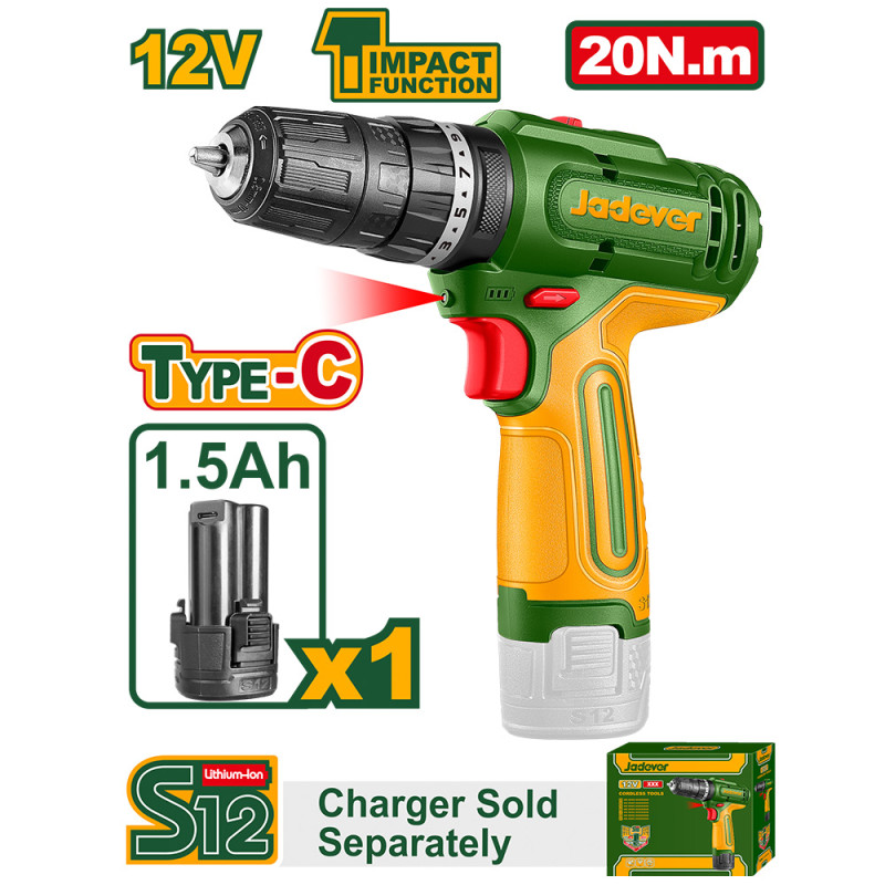 | Ταχύτητα χωρίς φορτίο: 0-400/0-1500rpm Ρυθμός κρούσης: 22500bpm Μέγιστη ροπή: 20Nm Μέγιστο τσοκ: 0,8-10mm Ρυθμίσεις ροπής: 18+1+1 Μηχανικό κιβώτιο 2 ταχυτήτων Ενσωματωμένο φως εργασίας Θύρα φόρτισης μπαταρίας: USB Type-C Ο φορτιστής πωλείται χωριστά Περιλαμβάνει: Μπαταρία 1,5 Ah (JDLBS5150) |