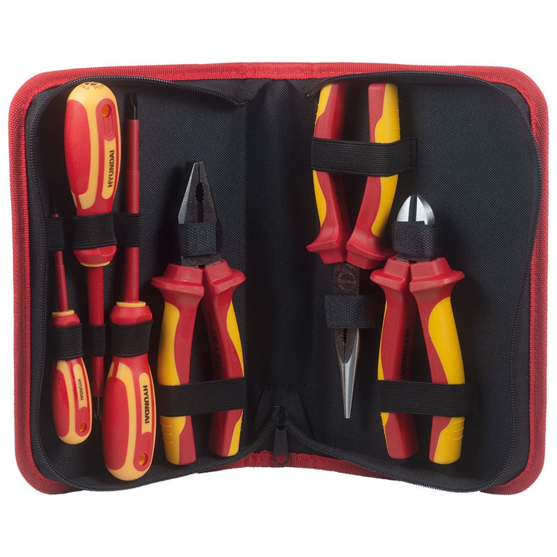 Σετ εργαλείων ηλεκτρολογίας VDE σε θήκη HYUΝDAI - 6 τεμάχιακωδικός: HH59417Περιέχει:- ⊖︀ SL1.0×5.5×125 mm- ⊕ PH0×75 mm, PH2×100 mm- VDE Combination pliers, 7"- VDE Side cutting pliers, 6"- VDE Long nose pliers, 8"Επικοινωνήστε μαζί μας για όποια απορία ή διευκρίνηση