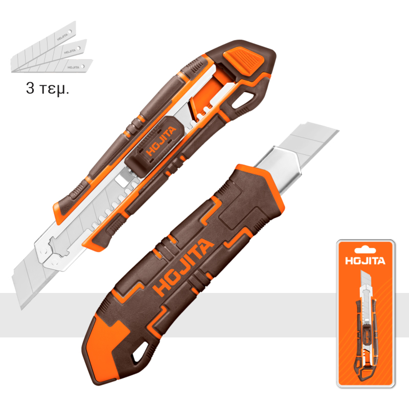 >Μέγεθος λεπίδας: 18mm x 100mm >Μήκος: 167mm >Με επίπεδο πλήκτρο πιέσεως >Περιλαμβάνει 3 τεμάχια λεπίδων