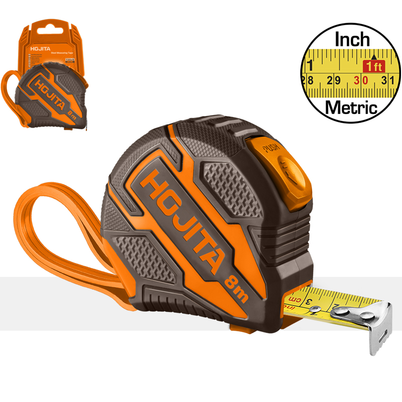>Φάρδος λάμας: 25mm >Σύστημα μέτρησης : μετρικό & ίντσες >Μήκος: 8m >Μηχανισμός αυτόματου κλειδώματος >Αντιολισθητικό περίβλημα >Με 2 στοπ >Εύκολη χρήση με το ένα χέρι