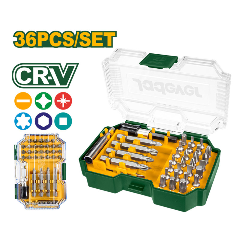 | Περιλαμβάνει: 26 τεμ μύτες κατσαβιδιού μήκους 25 mm: H3-4-5-6, S1-2-3, T10-15-20-25-27-30-40, PZ0-1-2-3, SL3-4-5-6, PH0-1-2-3 8 τεμ μύτες κατσαβιδιού μήκους 50 mm: PH1-2-3, PZ1-2, SL3-5-6 1 τεμ στέλεχος κατσαβιδιού 1 τεμ αντάπτορας γρήγορης απελευθέρωσης Συσκευασία σε πλαστικό κουτί |