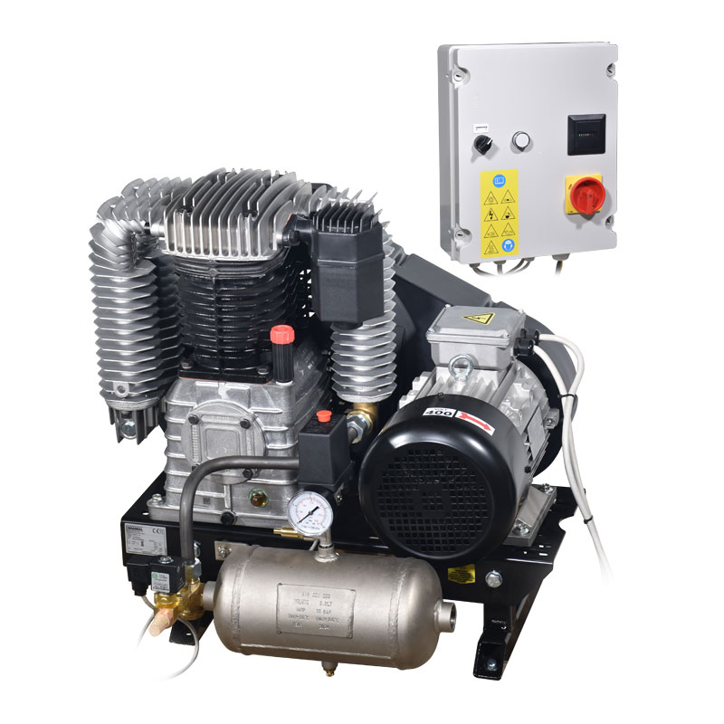 Ο αεροσυμπιεστής διαθέτει καζανάκι προσυγκεντρώσεως 3,3 λίτρα με αντεπίστροφη , πιεσοστάτη , ηλεκτροβαλβίδα 24 Volt , βαλβίδα ασφαλείας, μανόμετρο και 4 αντικραδασμικά πέλματα