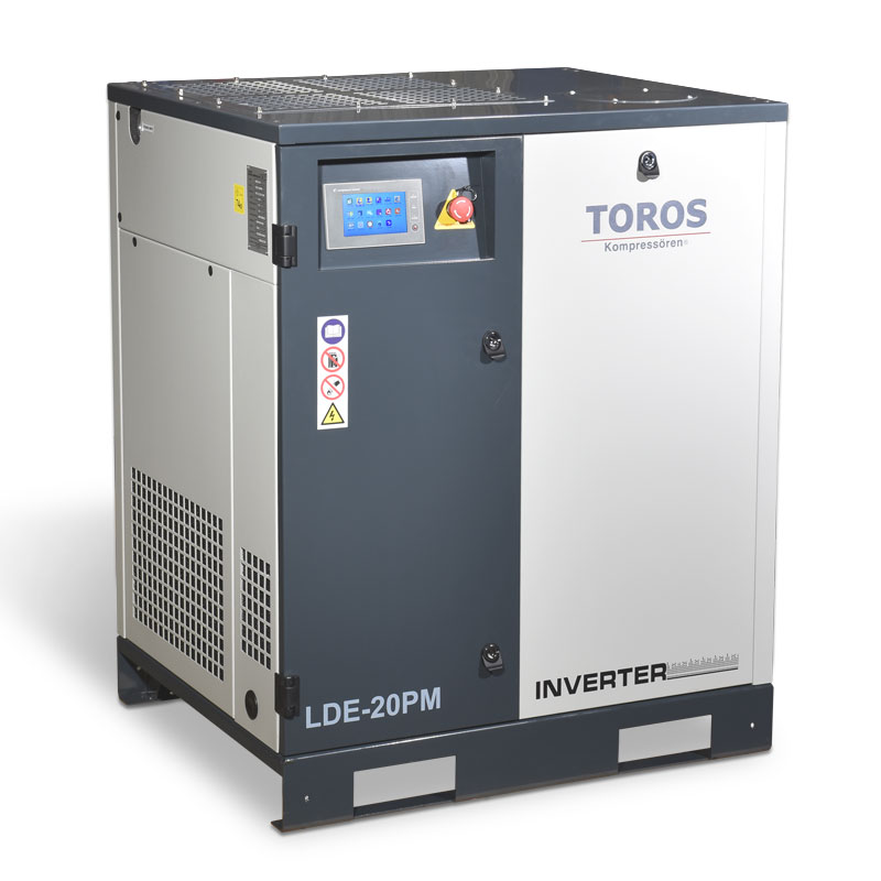 Νέα σειρά κοχλιοφόρων αεροσυμπιεστών TOROS τεχνολογίας Inverter, που προσαρμόζουν την ταχύτητα του κινητήρα ανάλογα με τις διακυμάνσεις της κατανάλωσης αέρα και διασφαλίζουν εξοικονόμηση ενέργειας έως 50%. Έχουν κοχλία υψηλής απόδοσης, ποιοτικά και αξιόπιστα ηλεκτρονικά και ηλεκτρικά εξαρτήματα.