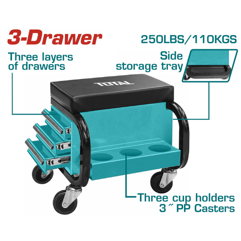 Νέο TOTAL ΕΠΑΓΓ. ΕΡΓΑΛΕΙΟΘΗΚΗ ΚΑΘΙΣΜΑ ΜΕ 3 ΣΥΡΤΑΡΙΑ ΚΑΙ ΡΟΔΕΣ 110Kg (THCS103) TOTAL