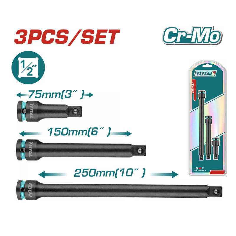 Νέο TOTAL ΕΠΑΓΓ. ΣΕΤ ΠΡΟΕΚΤΑΣΕΙΣ ΑΕΡΟΣ ΜΑΥΡΕΣ 1/2" 3 ΤΕΜ (THISEB12031) TOTAL